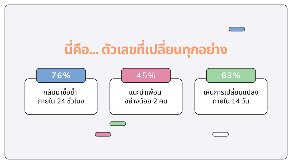 76% ของลูกค้ากลับมาใช้บริการซ้ำภายใน 24 ชั่วโมง